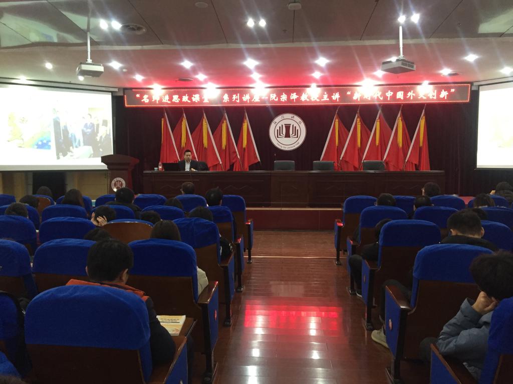 2019年12月23日下午,应万博MAX体育官网万博MAX体育官网邀请,中国国际问题研究院阮宗泽研究员应邀来万博MAX体育官网授课,在图书馆八楼学术报告厅为万博MAX体育官网师生作了一场题为“新时代中国外交理论创新与实践贡献”的学术报告。报告会由万博MAX体育官网院长随新民主持。万博MAX体育官网全体专兼职教师、研究生、部分专业本科生聆听了报告。