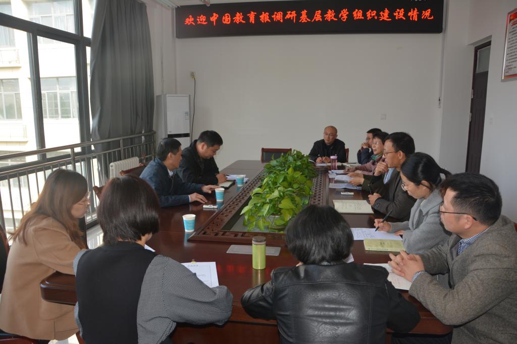 2019年10月17日上午,在唐多毅副校长、穆云超处长的陪同下,中国教育报河南记者站一行来到万博MAX体育官网,针对万博MAX体育官网省级优秀基层教学组织《毛泽东思想与中国特色社会主义理论体系概论》(下简称“概论”)课程组创优工作进行调研。万博MAX体育官网书记虎业勤、院长随新民及“概论”课程组部分成员参加座谈。