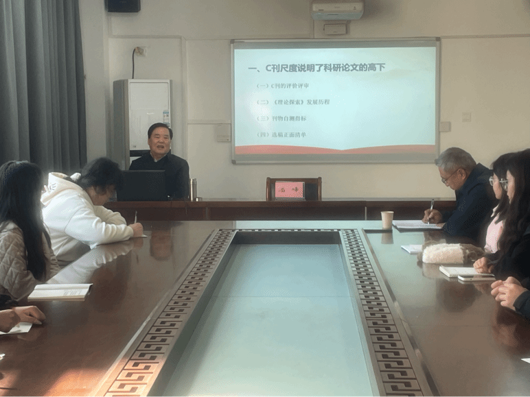 潘峰教授结合C刊《理论探索》的发展历程、刊物自测指标和选稿正面清单,说明了C刊科研论文的写作技巧。他特别强调,投稿者一定要注意C刊选稿的负面清单,不要让稿件成为不能正确对待政治的论文、不处在前沿和研究领域的论文、存在致命“方法内伤”的论文、只是西方话语传声筒的论文、不能排除侵权风险的论文。最后,他希望广大师生坚持以事业心成就科研论文的人生追求、牢记负面清单、秉持千锤百炼出精品的专业耐心和素养、具备理论联系实际学风的看家本领,从而成为打造C刊优质论文的高素质作者。