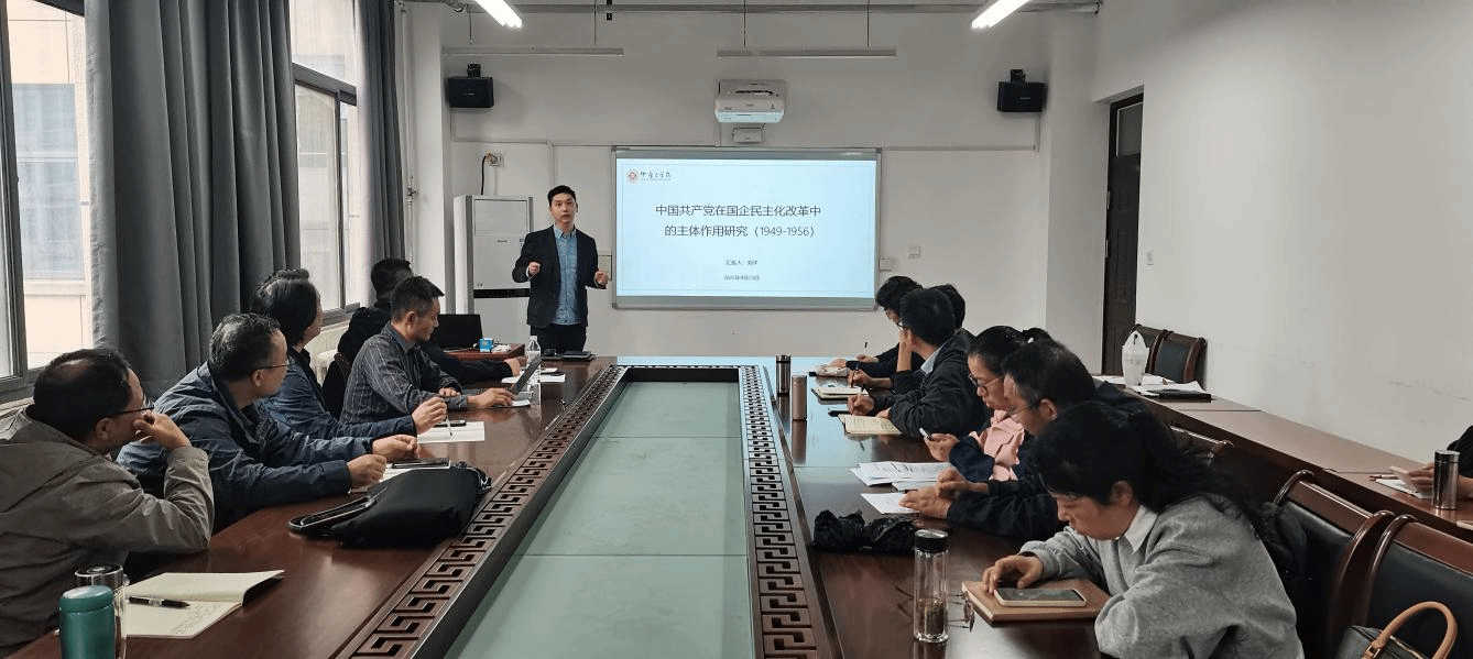 刘洋老师依托国家社科基金申报书,从选题说明、选题依据、主要目标、重点难点、研究框架、创新之处、预期的学术价值和社会效益等方面深入阐述了《中国共产党在国有企业民主化改革中的主体作用研究(1949-1956)》。他从具体问题、研究实践、核心概念确定选题,梳理国内外研究概况,挖掘典型案例,构建层次清晰的研究框架,涵盖理论基础、中国共产党经济民主思想渊源及早期企业制度建设、中国共产党在国有企业民主改革中的主体作用、典型案例整理分析以及新中国初期的经验对当下国有企业改革的启示等模块,为当下国有企业完善民主治理体系、强化党的领导核心作用提供兼具理论深度与实践价值的参考路径。