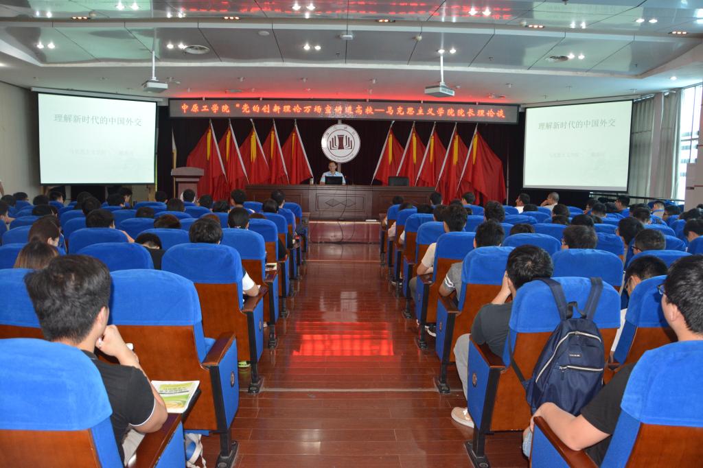 报告会一开始,随新民院长首先指出党的十九大报告谱写了中国外交的新篇章:它提出了中国在新时代的外交战略与蓝图设计,指明了中国的国际角色定位,阐释了国际发展背景和趋势,总结了我国对外交往的工作重心、使命责任、行事原则和推进方略。随后,随院长为同学们分析了当前的国际国内形势,指出我国坚持走和平发展道路,坚持对话结伴但不结盟。强调我国秉持正确的义利观、按照亲、诚、惠、容理念深化同周边国家关系,遵循共商、共建、共享原则,通过“一带一路”建设发展我国同周边国家的经济。最后,随院长谈到我国新时代外交布局,并详细分析了外交布局中中美关系的三个阶段以及六层关系的不平衡发展。