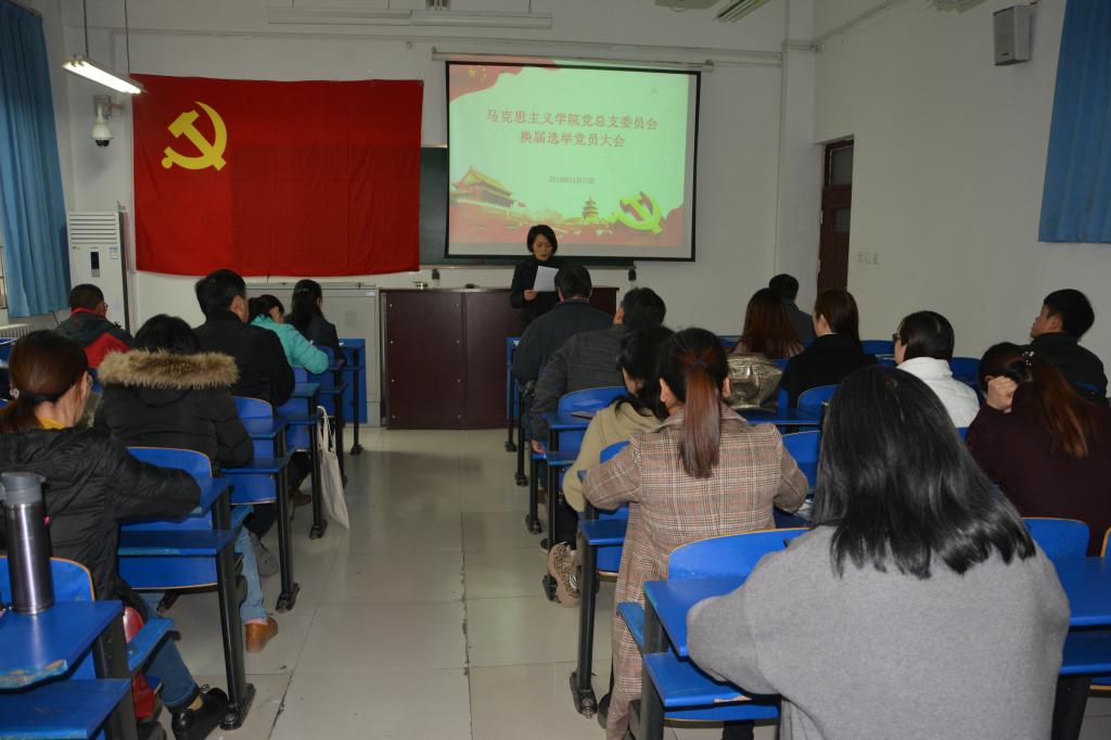 按照学校党委的工作部署,万博MAX体育官网党总支于11月27日下午两点在2号组团楼102教室召开党员大会,举行万博MAX体育官网党总支委员会换届选举工作。学校组织部正处级组织员张燕杰参加会议。大会由马院党总支副书记兼副院长赵茜主持。大会应到党员43名,因公、因病请假4名,实到的党员39名,有选举权的党员35名,超过应到党员的五分之四,本次选举大会有效。